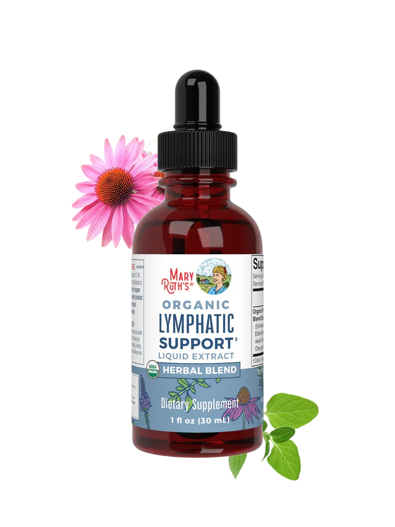 Mary Ruth’s Lymphatic Drops include Echinacea root and European elderberry, which support immune health but have limited evidence for reducing fluid retention, swelling, or improving lymph flow.